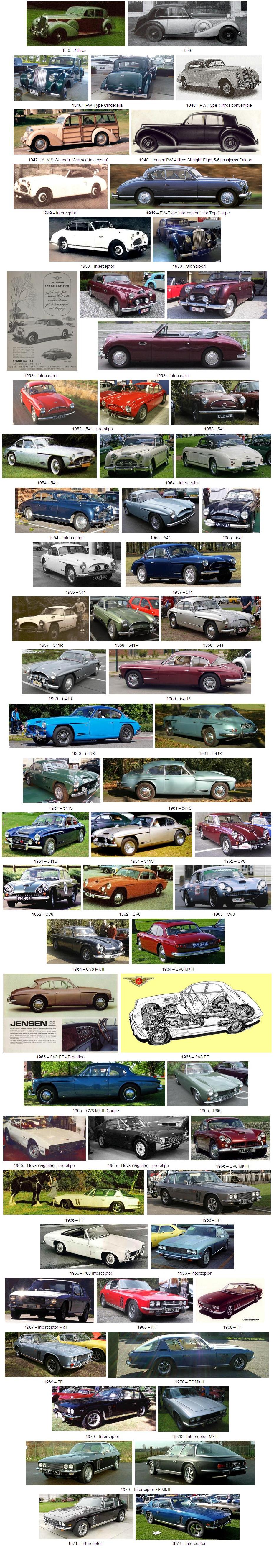 La producción de coches cesó durante los años de la Guerra, pero en 1946 fue presentado el nuevo y lujoso Jensen PW. La falta de suministro de materias primas provocó que se fabricaran pocos ejemplares. También en 1946 el diseñador de carrocerías procedente de Wolseley Eric Neale se incorporó a la empresa y su primer proyecto fue un moderno coupe denominado Interceptor que fue producido entre 1950 y 1957. En 1955, Jensen empezó la producción de la obra maestra de Neale, el 541, que utilizaba entonces un material revolucionario para su carrocería, la fibra de vidrio. El 541 fue sustituido en 1962 por otro diseño de Neale, el CV8, que como novedad sustituía el típico motor Austin de 6 cilindros por un Chrysler V8 americano de 6 litros. Ese potente motor en un coche tan ligero convirtió al Jensen en uno de los coches de cuatro plazas más rápidos de su tiempo.
