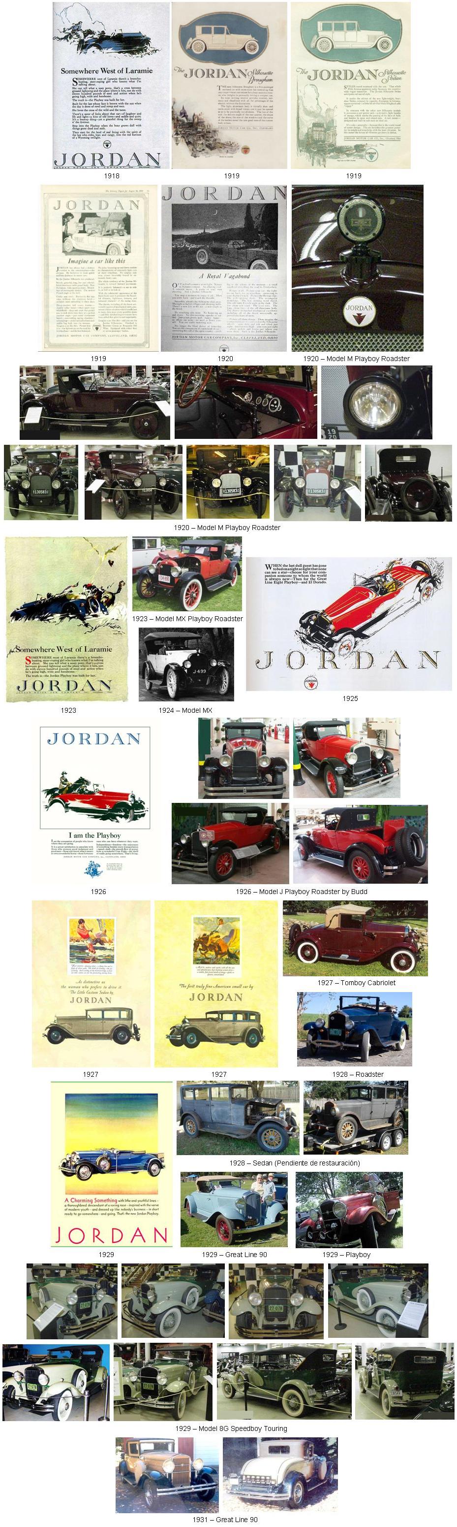 Jordan también fue uno de los primeros fabricantes en bautizar sus modelos con nombres singulares y evocadores como “Sport Marine”, “Tomboy” y “Playboy”. En 1920, la empresa presentó el “Friendly Three coupe“ con el slogan " Seats two, three if they're friendly” (Asientos para dos, o tres si son amigos).