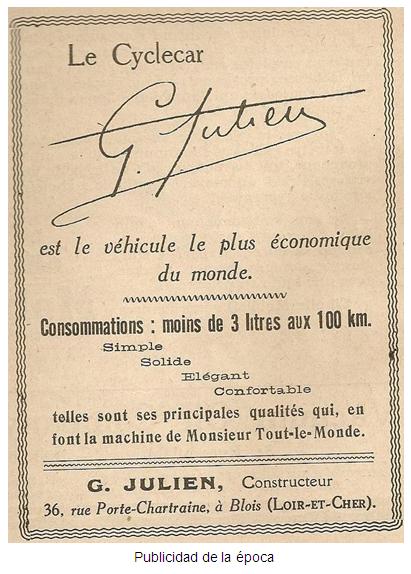 En unos talleres situados en el número 26 de la Rue Porte-Chartraine, de la localidad francesa de Blois (Loir-et-Cher), un mecánico llamado G. Julien, construyó entre 1920 y 1926, unos pequeños cyclecars que llevaban su nombre.