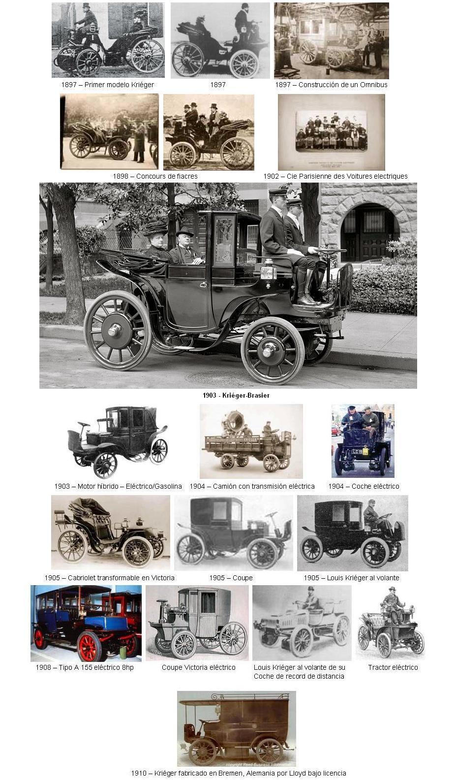 En 1903, Kriéger lanzó uno de sus modelos más reconocidos. Se trataba de un coche híbrido con dos motores, uno de propulsión eléctrica y otro de gasolina (Richard-Brasier). Este coche, conocido como "Kriéger-Brasier" fue fabricado hasta 1906 y tenía un asombroso parecido con el Lohner-Porsche de aquel mismo año.