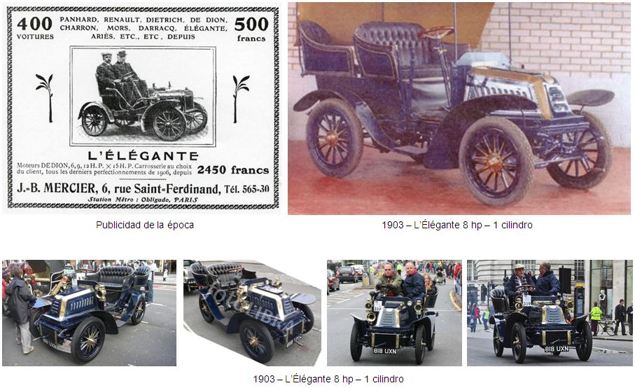 L’Élégante es una de esas numerosas marcas que no dejaron demasiado rastro en la historia del automóvil. Creada por J.B. Mercier, tuvo actividad entre 1903 y 1907, estuvo instalada en el centro de París, a dos pasos del boulevard de la Grande Armée, que era un lugar estratégico para la marca.