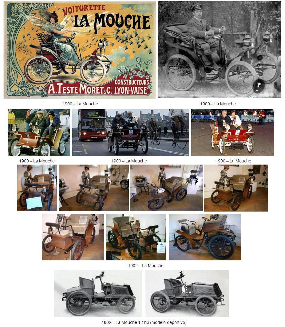 Los primeros modelos tenían dirección de manillar estilo Peugeot, pero enseguida incorporaron volante. "La Mouche" era una pequeña voiturette equipada con un motor De Dion Bouton.