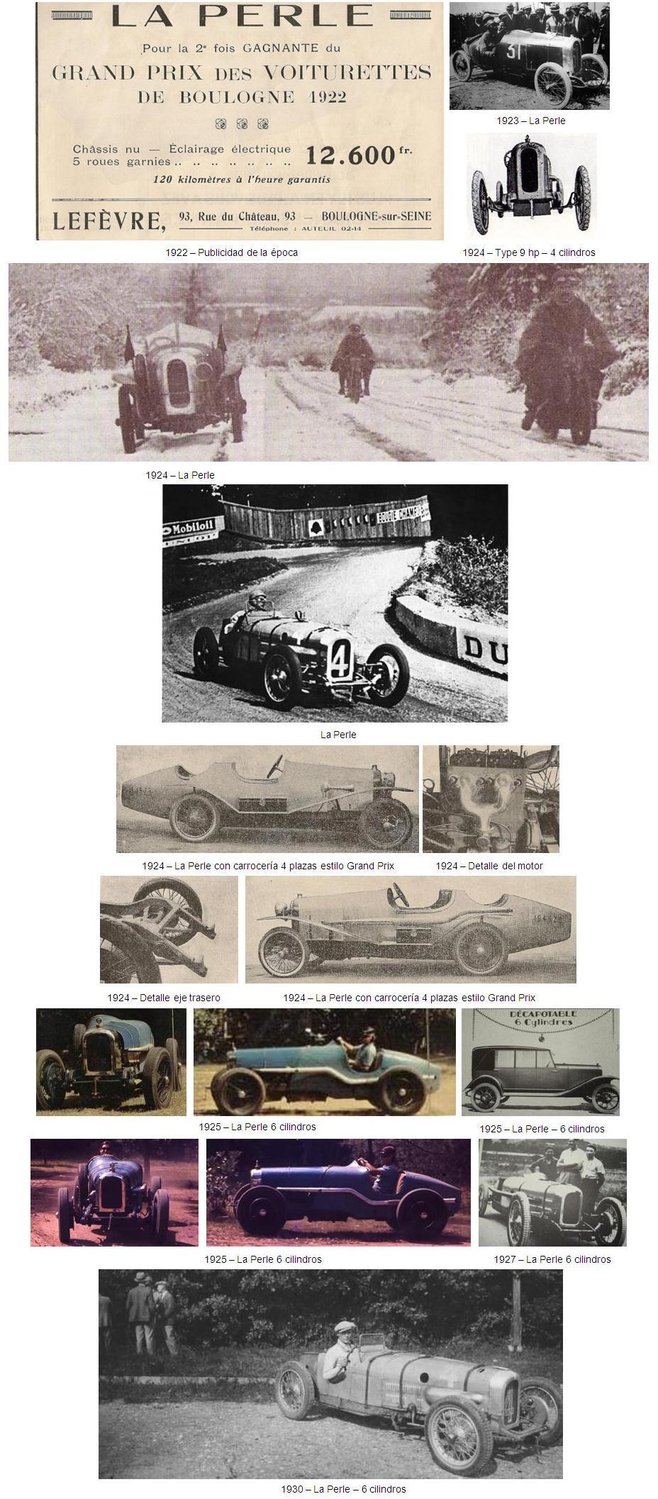 Louis Lefèvre no fue una excepción, y en 1913 fundó su propia empresa en Boulogne-sur-Seine. El primer “La Perle”, que así se llamaba la marca de Lefèvre, fue un cyclecar de competición. Este prototipo estaba impulsado por un motor de dos cilindros en V y 1000 cc, refrigerado por agua, con las válvulas de escape y admisión opuestas. La caja de cambios era del tipo de fricción y la trasmisión a las ruedas posteriores se efectuaba mediante un par de correas de cuero.