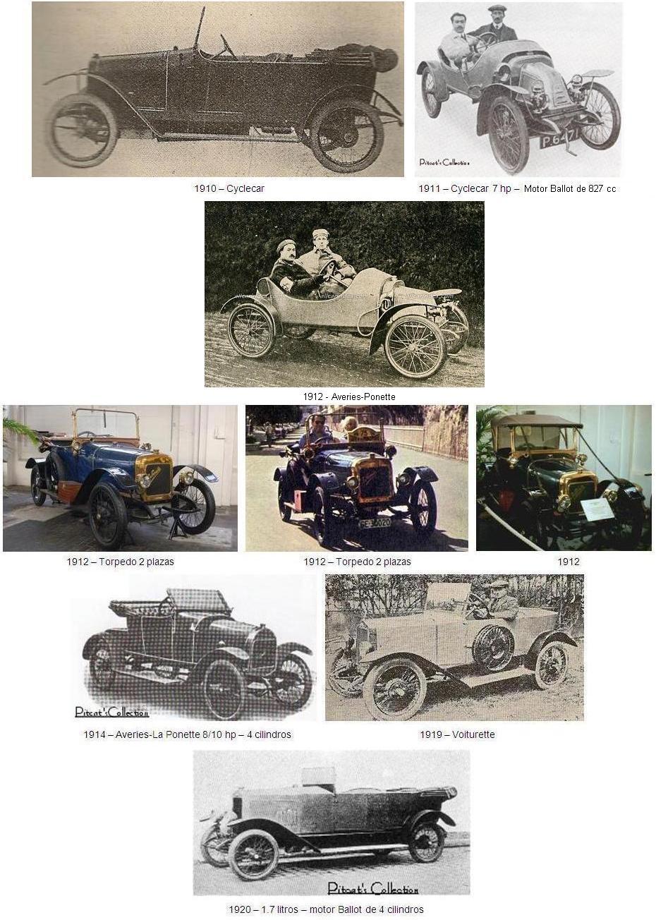 | 1914 - 1915 : | Averies Tipo 8/10cv (motor Ballot de 4 cilindros y 1327cc) |