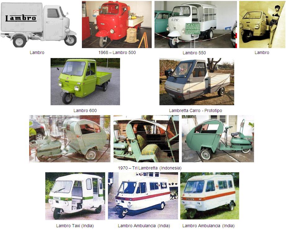 La famosa marca de scooters Lambretta, producida por Innocenti (ver historia), nunca fue fabricante de automóviles (aunque Innocenti si lo fue), no obstante consideramos necesario referenciarla en “Autopasion18” ya que por lo menos se sabe que existieron prototipos de pequeños vehículos de cuatro ruedas que la firma nunca llegó a comercializar con su nombre.