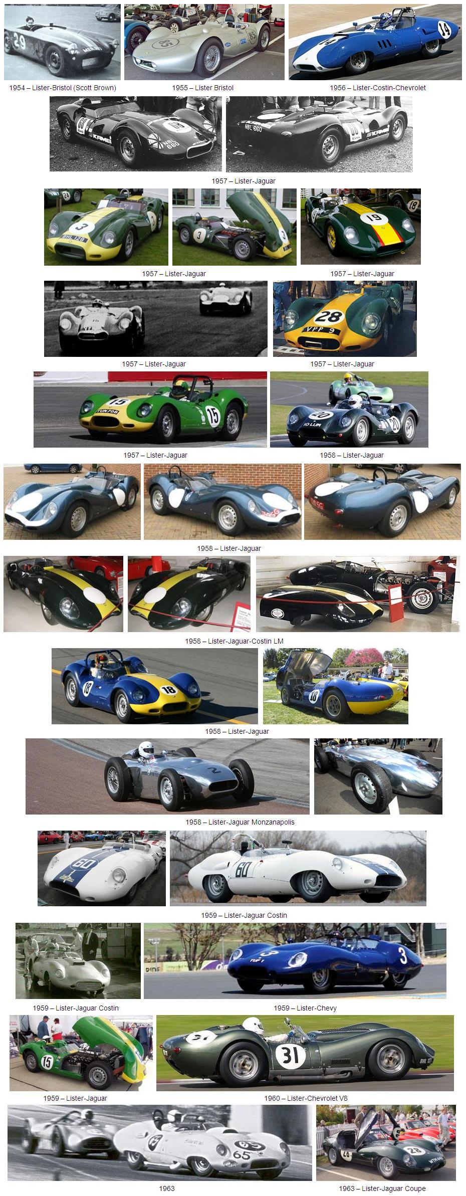 En 1954, el piloto de carreras Brian Lister fabricó en Cambridge el primero de una serie de coches deportivos. Lister se inspiró en el Cooper, y utilizó bastidores tubulares, eje trasero de Dion, y frenos de tambor. Al igual que otros constructores, utilizó un motor MG modificado con una caja de cambios de serie.