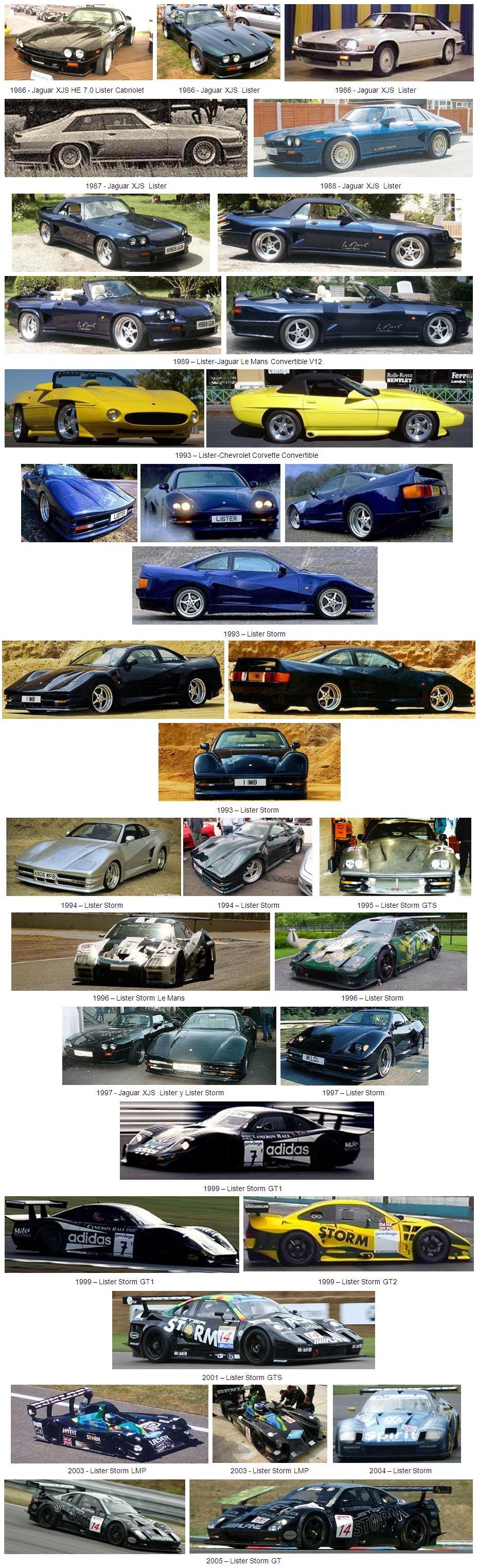 La empresa Lister resucitó en 1986 en Leatherhead, Surrey, como “Lister Cars Ltd“. De la mano del ingeniero Laurence Pearce fueron construidas aproximadamente 90 preparaciones del Jaguar XJS. La experiencia acumulada en esa operación condujo a la empresa a diseñar a un nuevo coche deportivo, el Lister Storm. El Lister Storm fue presentado en 1993 como un deportivo de calle. Estaba equipado con un potente motor V12, el más grande nunca utilizado desde la Segunda Guerra Mundial en un coche de serie. La versión de calle homologada del Storm GT utilizaba un motor Jaguar de 7 litros (6996 cc), y costaba 350.000 dólares. Su elevado precio provocó que tan sólo se construyeran 4 unidades hasta el cese de la producción. De las 4 unidades sólo se conservan 3.
