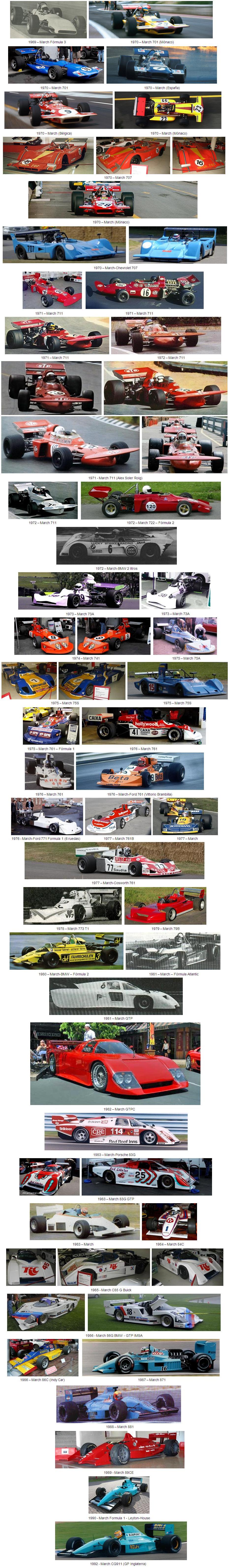 Además de la Fórmula 1, March también estuvo presente en otras categorías y competiciones; Fórmula 2, Fórmula 3000, Fórmula 3, Can-Am, IndyCar, Sport prototipos, IMSA GTP, Fórmula 5000, Fórmula Atlantic, Fórmula Ford, Fórmula Renault, etc…