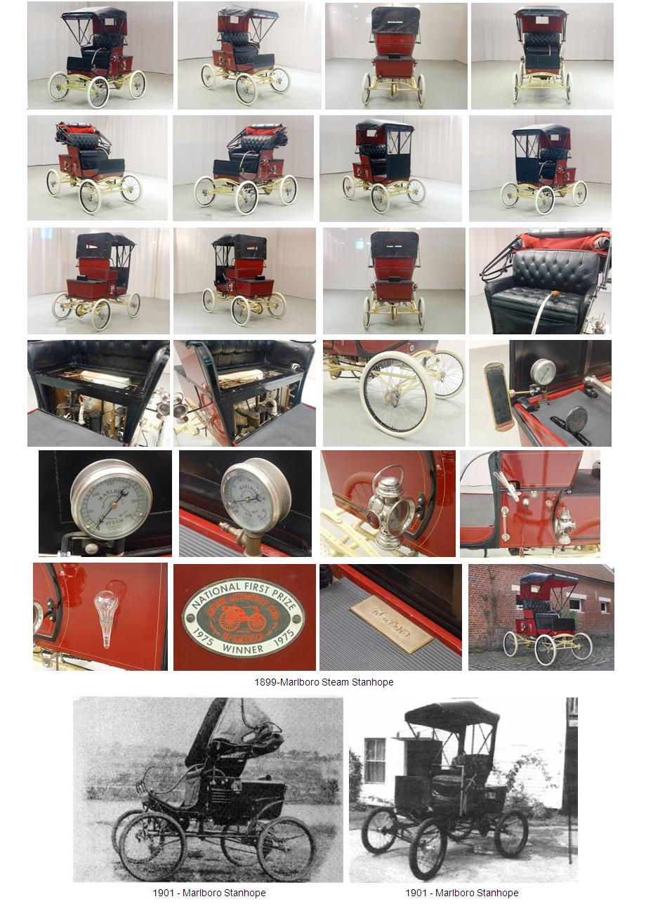 El coche “Marlboro” con capacidad para dos pasajeros tenía una distancia entre ejes de 1575 mm (62 pulgadas), y el de cuatro pasajeros de 1702 mm (67 pulgadas). Estaba equipado con un motor Mason de dos cilindros horizontales que desarrollaba 5 hp a 300 rpm. Estaba provisto de una caldera de agua con 414 tubos de cobre sin soldaduras construida para obtener una presión de vapor de 200 psi, pero probada a 900 psi por seguridad. La caldera tenía un regulador de presión automático. El depósito de agua era de cobre y tenía capacidad para 95 litros (25 galones). El depósito de gasolina contenía 38 litros (10 galones). El chasis era tubular y la suspensión era mediante muelles elípticos completos. La tracción de ejercía mediante una cadena simple. El peso era de aproximadamente 476 Kg (1050 libras). La gama de precios oscilaba entre los 700 y los 1.000 dólares. Según su fabricante, el coche “Marlboro” podía alcanzar los 48 Km/h (30 mph) en caminos llanos, y los 40 Km/h (25 mph) en caminos en mal estado, y podía subir pendientes del 25%.