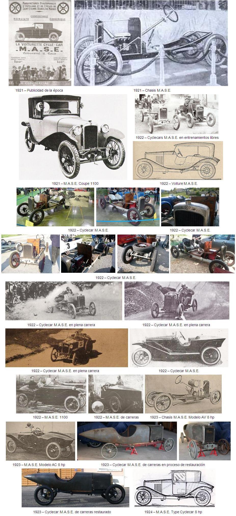 Esta firma construyó básicamente algunos cyclecars deportivos con un interesante motor de 995 cc y después de 1097 cc, diseñado por Némorin Causin. Los cyclecars M.A.S.E. utilizaban un chasis diseñado por René Le Grain-Eiffel.