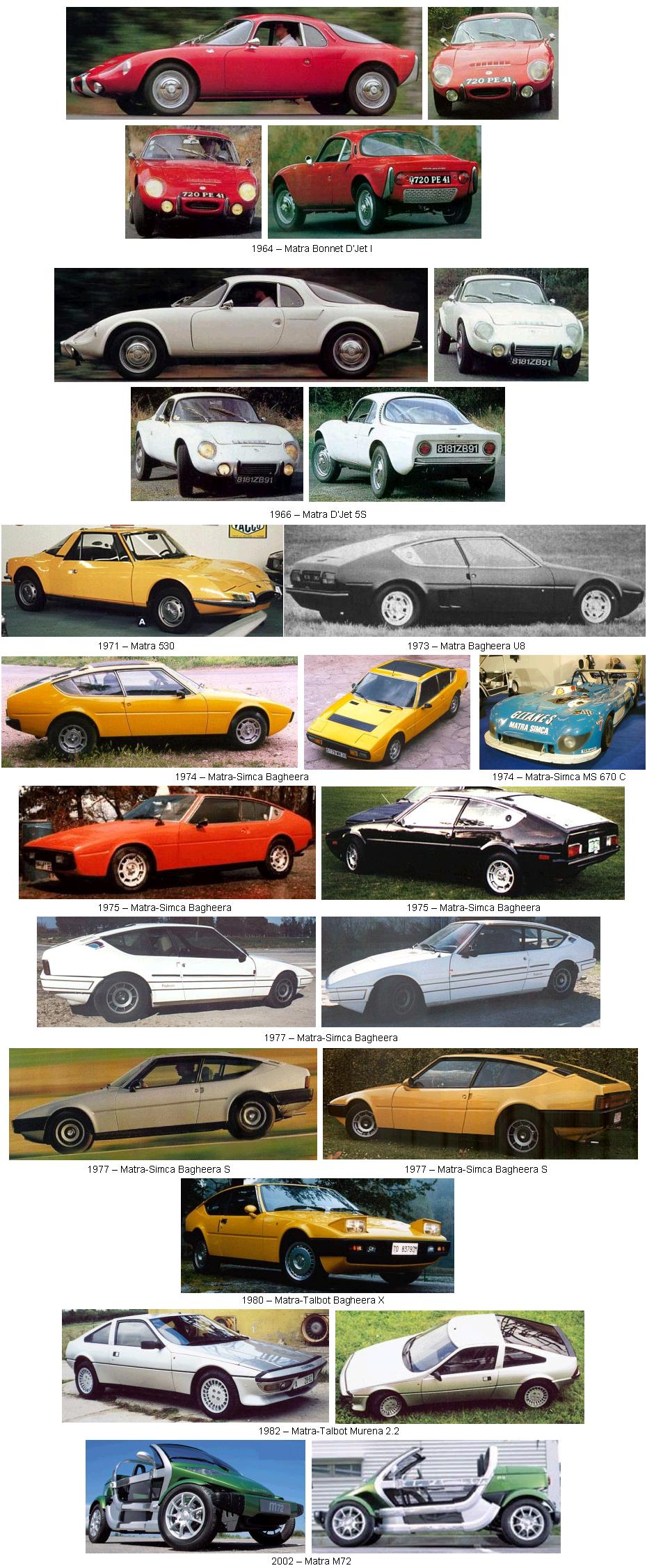 La compañía acumuló desde su fundación un importante historial de logros. En 1967, lanza el M 530, un deportivo asequible con notables avances técnicos en su fabricación; Henri Pescarolo y Graham Hill ganaban por primera vez para la marca las 24 horas de Le Mans con el MS 670; en 1973, sacan a la venta el elegante y futurista Bagheera, con motor transversal central Simca y tres asientos en la fila del conductor.