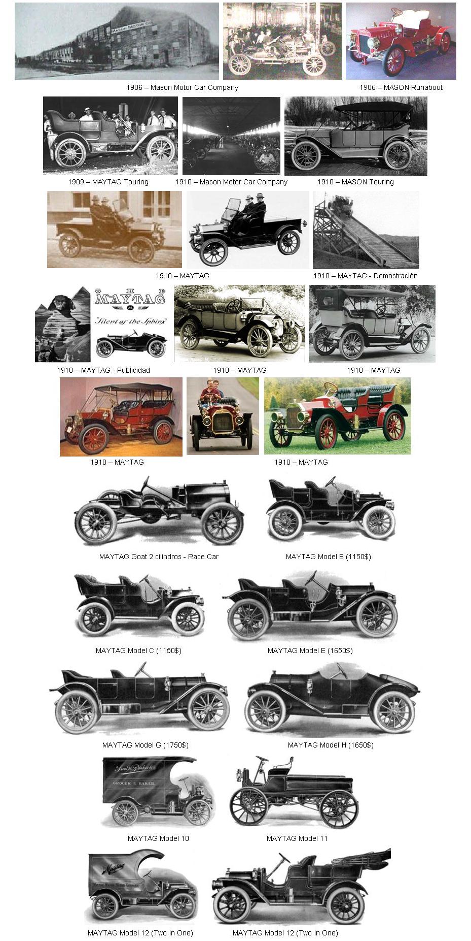 En 1909, Fred L. Maytag, importante fabricante de lavadoras, invirtió dinero en la empresa, que pasó a denominarse “Mason-Maytag Motor Car Company” y en 1910 se trasladó la fabricación a una planta en Waterloo, Iowa, en la que produjo coches de 2 cilindros de 24/28 hp bajo la marca “Mason” y de 4 cilindros de 35/38 hp. bajo la marca “Maytag”. Se produjeron hasta seis modelos distintos a precios que oscilaban entre los 1250 y los 1750 dólares.