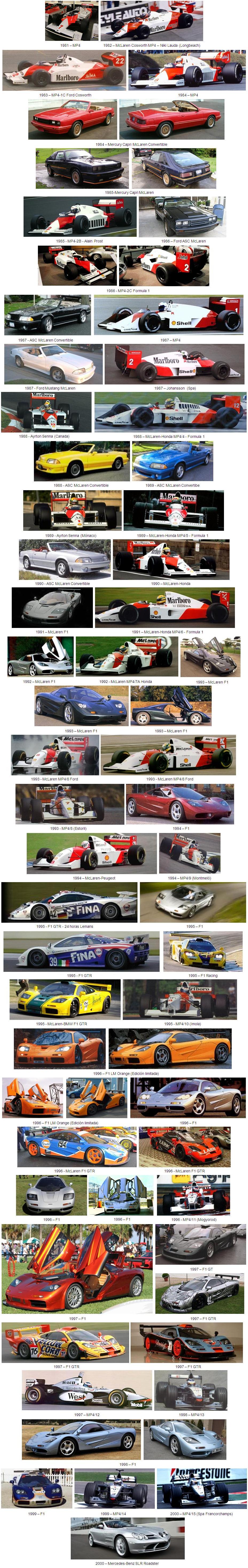 En 1994, McLaren presentó un caro super deportivo muy exclusivo diseñado por Gordon Murray, denominado F1. El F1 fue producido entre 1994 y 1998, y se fabricaron un total de 100 unidades. 64 unidades de calle, 5 unidades LM, 2 unidades GT y 29 unidades GTR. Tras varios coches de concepto, entre ellos el F2, finalmente el sucesor comercial del F1 fue el MP4-12C que no fue presentado hasta 2011.