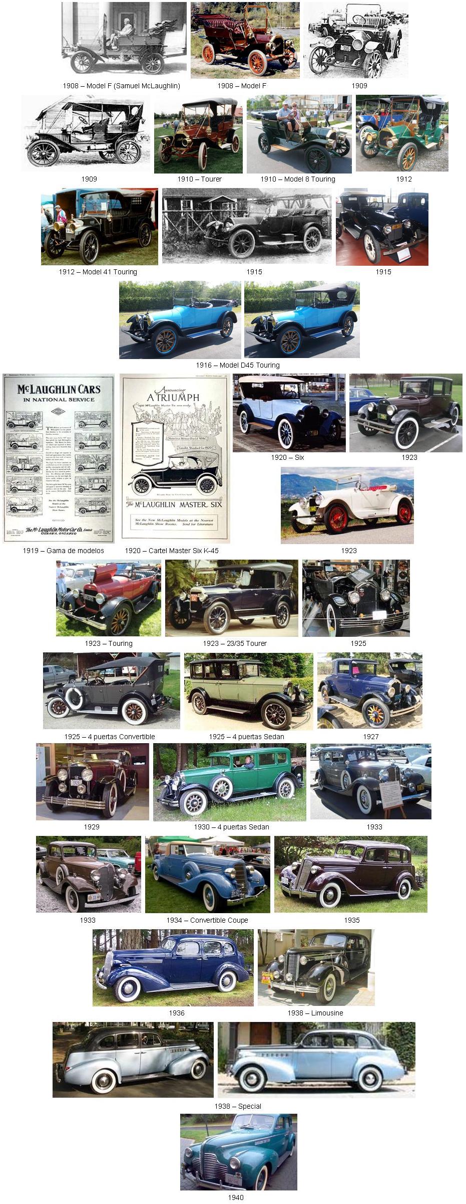 Casi desde el principio, McLaughlin produjo una amplia variedad de modelos en muchos estilos de carrocería, incluyendo un 4 cilindros, un 6 ligero, y un 6 estándar. Cuando Buick adoptó de forma definitiva en 1931 sus famosos motores de 8 cilindros, éstos también fueron utilizados por los McLaughlin-Buick.