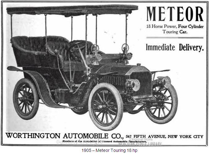 La “Worthington Automobile Company “ construyó varios tipos de automóvil. En 1904 adquirió la “Berg Automobile Company” y los derechos de la marca “Berg” (ver historia). La “Berg Automobile Company” mantuvo su nombre y su marca, aunque por muy pocos meses. La “Worthington Automobile Company “ empezó entonces a comercializar con la marca “Meteor” el antiguo coche Berg de 18hp.