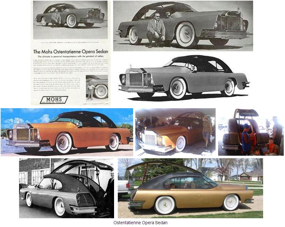 En 1967, Mohs presentó el “Ostentatienne Opera Sedan”, un coche de 4 plazas con una imponente parrilla de radiador claramente inspirada en los Rolls-Royce, y que era ofrecido a precios que oscilaban entre los 19.600 $ y los 25.600 $. Tenía una distancia entre ejes de 3,02 metros y pesaba 2.600 Kg. Los neumáticos de 7,50”x20” estaban llenos de nitrógeno. Estaba impulsado por un potente motor V8 de camión International Harvester, modificado siguiendo las especificaciones del propio Mohs. El acceso al vehículo se realizaba por la parte posterior, ya que unos sólidos raíles de seguridad de acero recorrían los laterales para proteger a los pasajeros contra un eventual choque lateral. Cuando se abría la gran puerta trasera, que estaba unida al parabrisas delantero, el parachoques trasero bajaba para facilitar el acceso de los pasajeros. El techo, que formaba parte de la puerta era de tipo claraboya. El comprador podía personalizar su lujoso coche solicitando cosas tan refinadas como el panel de instrumentos bañado en oro, tapicerías aterciopeladas, alfombras orientales de la dinastía Ming, un transformador de 110 voltios, refrigeración y calefacción mediante butano, luces intermitentes especiales, caja fuerte, etc…. La producción estimada era de tres a cuatro vehículos por año, pero se ignora el número de unidades realmente producidas.