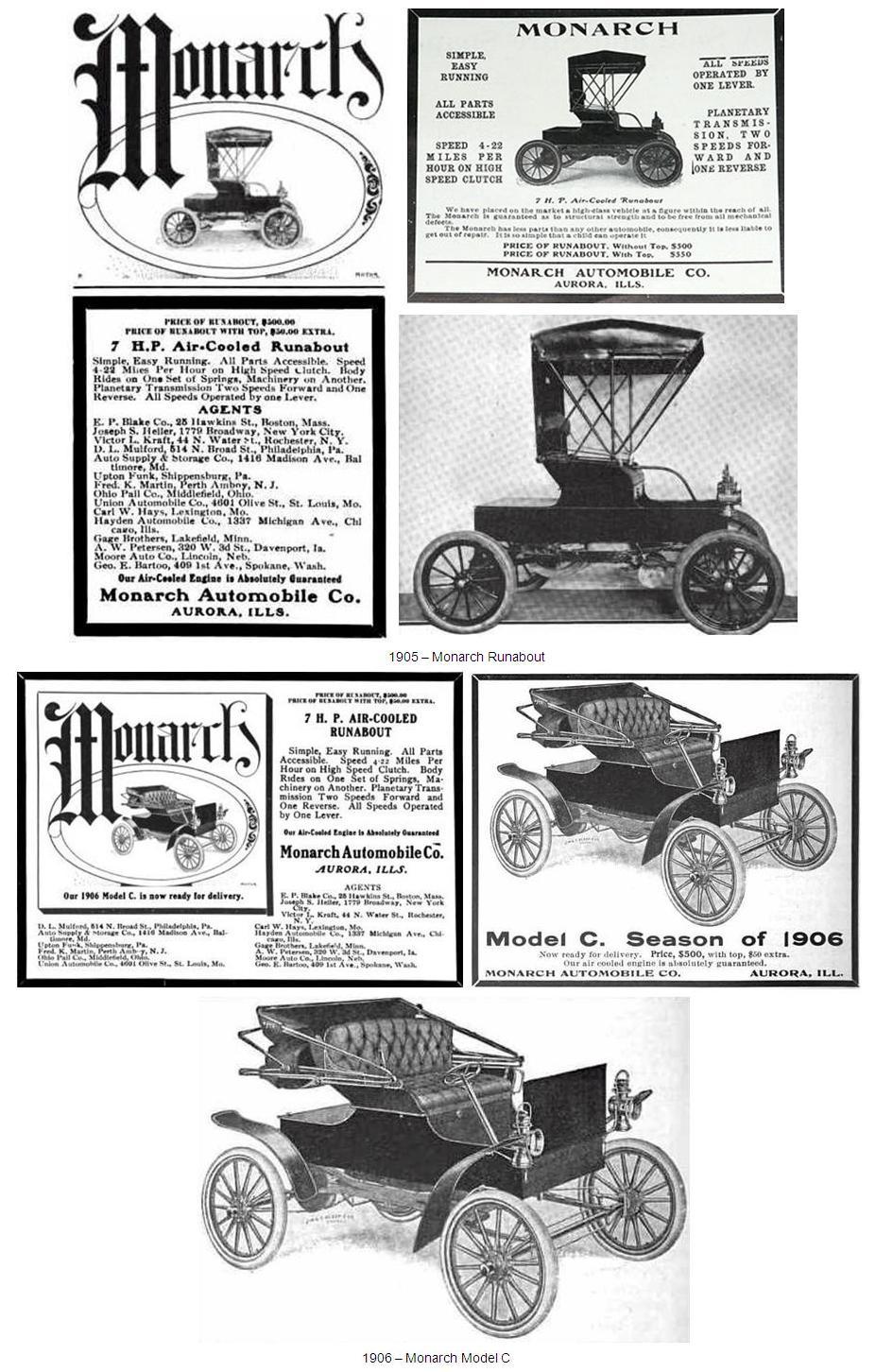 En 1905, la “Monarch Automobile Company” de Aurora, Illinois, propiedad de E. B. Overshiner, de Chicago, construyó un pequeño vehículo equipado con un motor monocilíndrico de 7hp, refrigerado por aire.