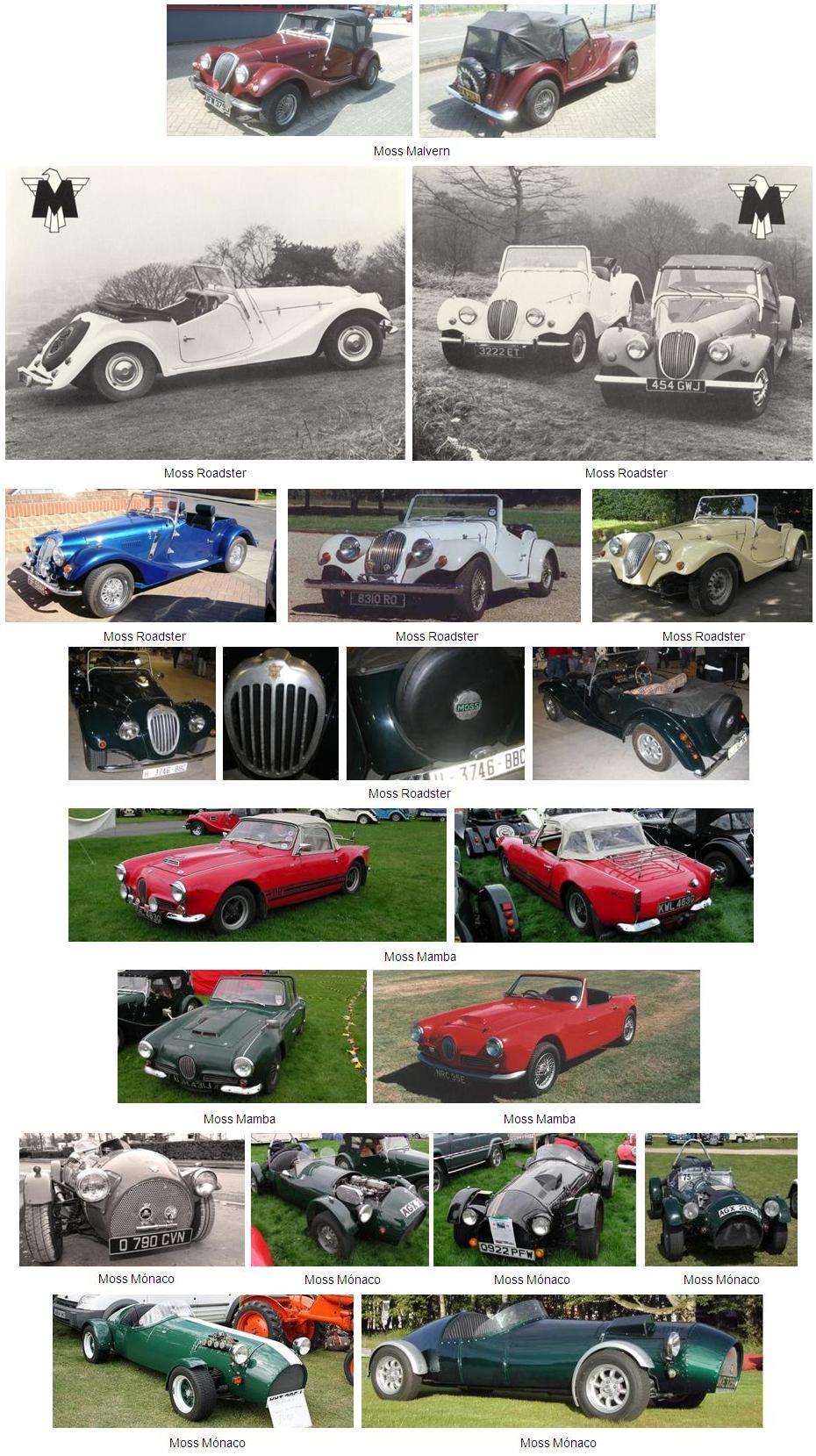 El Moss Malvern, después denominado Moss Roadster, estaba sin duda inspirado en los MG TF y Morgan. Basado mecánicamente en el Triumph Herald, la carrocería era de fibra de vidrio y el precio del kit era de £ 988. Hasta el incendio de la fábrica en 1985 se fabricaron aproximadamente unas 150 unidades.