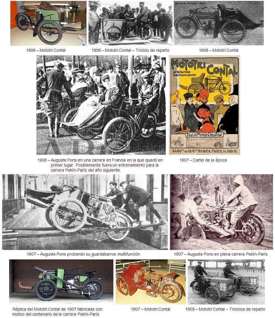 La marca alcanzó su máxima popularidad en 1907 cuando un Mototri Contal pilotado por Auguste Pons participó en la famosa carrera Pekín-París. El vehículo de Auguste Pons llevaba unos guardabarros desmontables, diseñados para improvisar una pasarela que ayudara a vadear zanjas y arroyos, además de servir como raquetas para mejorar la adherencia en terrenos no consolidados.