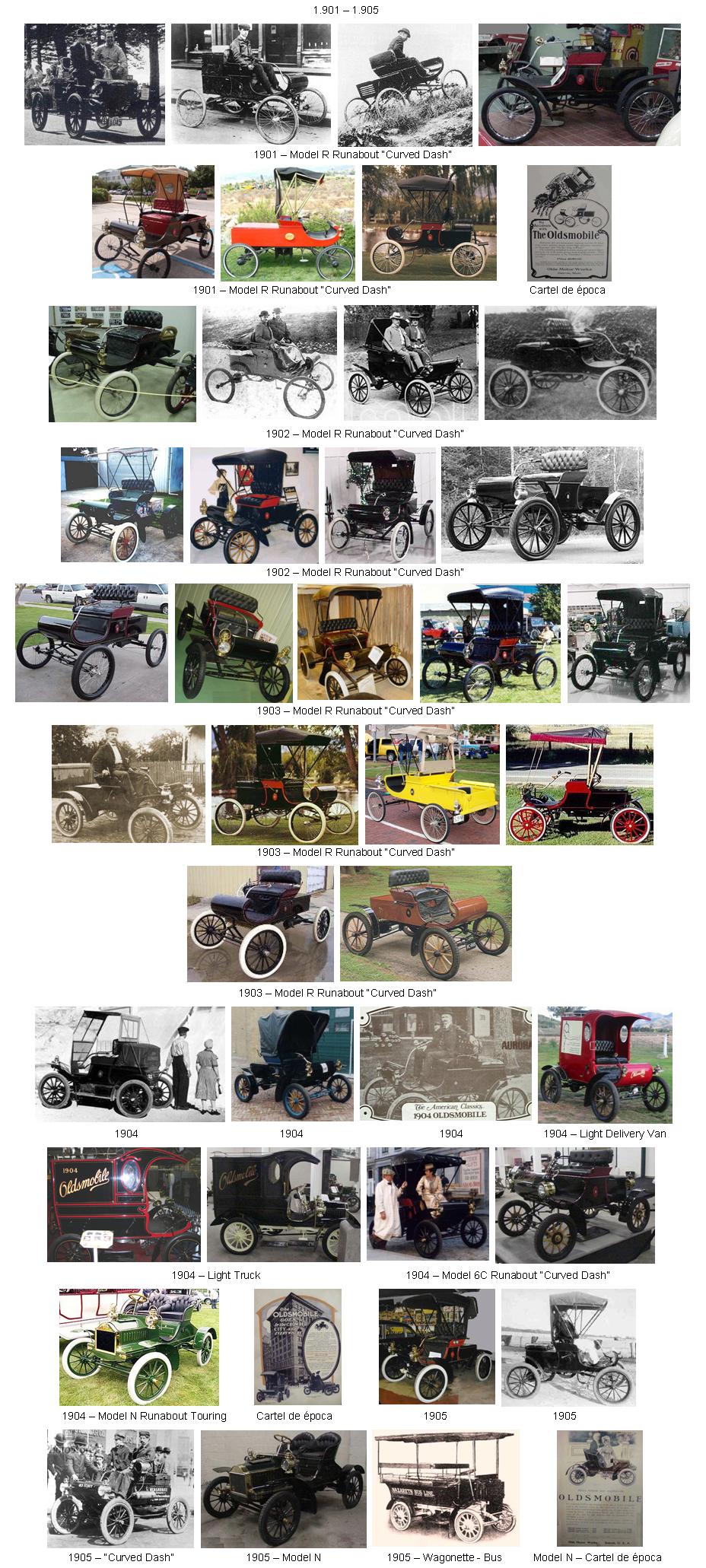 Así nació el coche más famoso de la historia de Oldsmobile, el Curved Dash, el primer coche norteamericano construido en serie mediante una cadena de montaje rudimentaria. Era un coche sencillo, económico y funcional, más cercano a un carruaje que a un automóvil, equipado con un motor monocilíndrico de siete caballos unido a una transmisión con dos marchas hacia adelante y una hacia atrás. La dirección era una palanca de tipo timón. Se llegaron a producir más de 5.500 unidades en 1904, lo que contribuyó al desarrollo de la automoción en Estados Unidos.