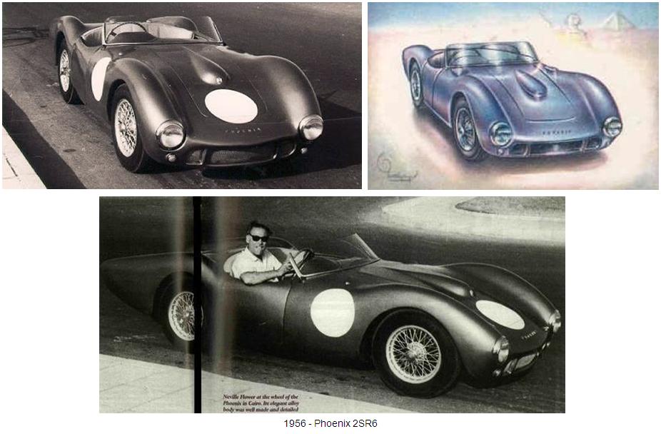Flower presentó a Nasser su proyecto, utilizando unos desarrollos denominados genéricamente “Phoenix” que su compañía había podido realizar gracias al apoyo del Estado Egipcio. El primero de esos proyectos, bautizado como “Phoenix Flamebird” era un roadster deportivo con base mecánica de Fiat 1100 del que algunas fuentes afirman que se pudieron llegar a vender algunas unidades en Egipto. En 1955 Flower proyectó el “Phoenix SR150”, un coche deportivo equipado con un motor de 1.5 litros, del cual no sabemos si pasó la fase de maqueta y ese mismo año, sobre la base del “Phoenix SR150” proyectó una versión de carreras denominada “Phoenix 2SR6” que sí fue construido, un modelo deportivo con chasis multitubular, basado en el coche británico “Lister-Corvette”, un modelo de “Lister Cars”. A simple vista presentaba pocos cambios respecto al coche original, pero en lugar de utilizar el motor del Lister-Corvette, utilizaba un motor Triumph de 4 cilindros y 1960 cc que desarrollaba 145 hp. El “Phoenix 2SR6”, llegó a participar en la carrera de las 24 horas de Le Mans en 1956.