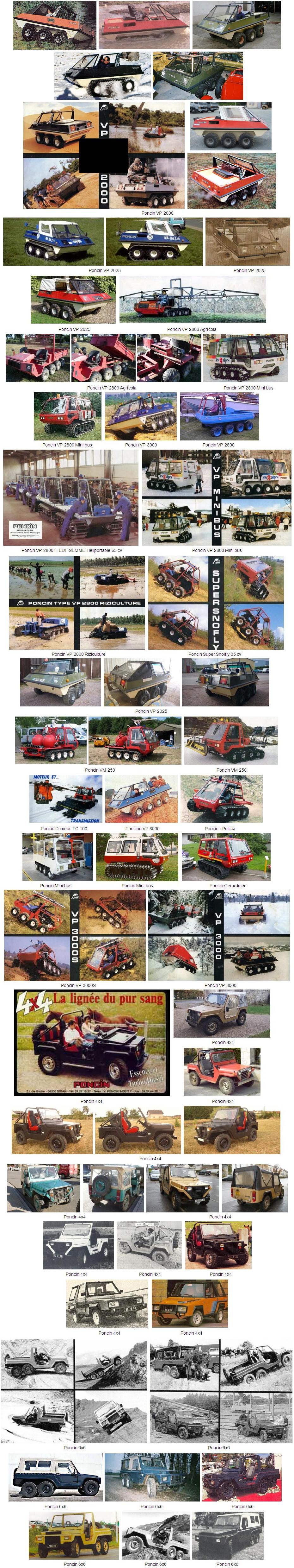 Las versiones VP 2000 y VP 3000 se vendieron por todo el mundo. Se podían ver vehículos Poncin en todas las estaciones de esquí de moda e incluso en Estados Unidos. Poncin desarrolló y vendió infinidad de versiones 4x4 6x6 y 8x8 para todo tipo de usos, tanto con ruedas de goma como tipo oruga, incluso comercializó vehículos tipo Jeep 4x4 y 6x6.