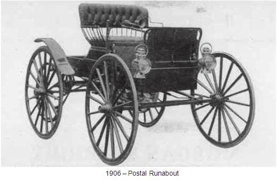 En 1906, Fred Postal tuvo la idea de utilizar su apellido como marca, para producir un coche tipo buggy, que estuviera especialmente diseñado para ser utilizado como vehículo para el servicio de correo rural, así como para hombres de negocios que viajaran. Para fabricarlo utilizó las instalaciones de una fábrica cerrada recientemente en Bedford, Indiana, que había pertenecido a la “Anderson Machine Company”, y fundó la “Postal Auto & Engine Company”.