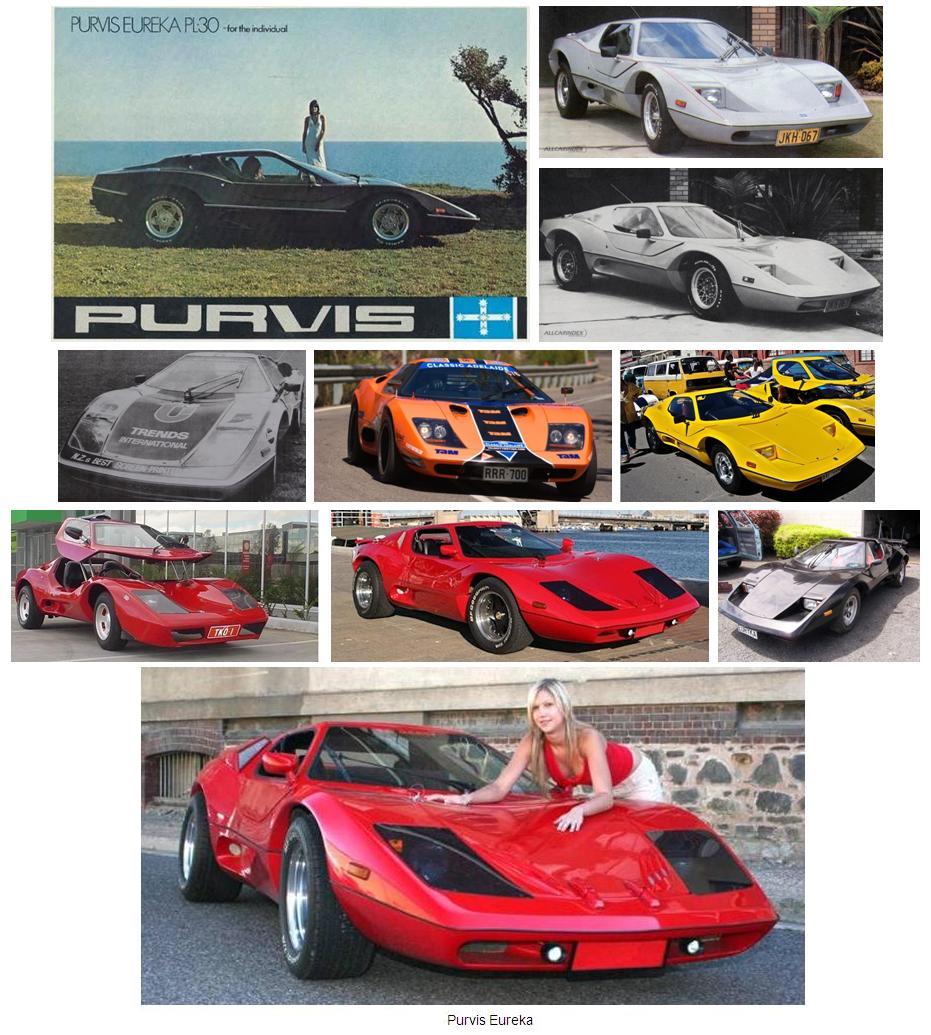 El Purvis Eureka australiano, utilizaba el chasis del VW Beetle y carrocería de fibra de vidrio, y habitualmente estaba equipado con motores Volkswagen refrigerados por aire (VW 1.6 F4 - VW 2.0 F4), o Ford de 4 cilindros en línea (Ford 1.6 I4 – Ford 2.0 I4), aunque a veces también se motorizaba con motores Mazda Rotary. Utilizaba una transmisión de 4 velocidades de origen VW y sus dimensiones eran; Distancia entre ejes 2400mm, longitud 4420mm, anchura 1753mm y altura 1067mm. El peso en vacío era de tan sólo 700 Kg.