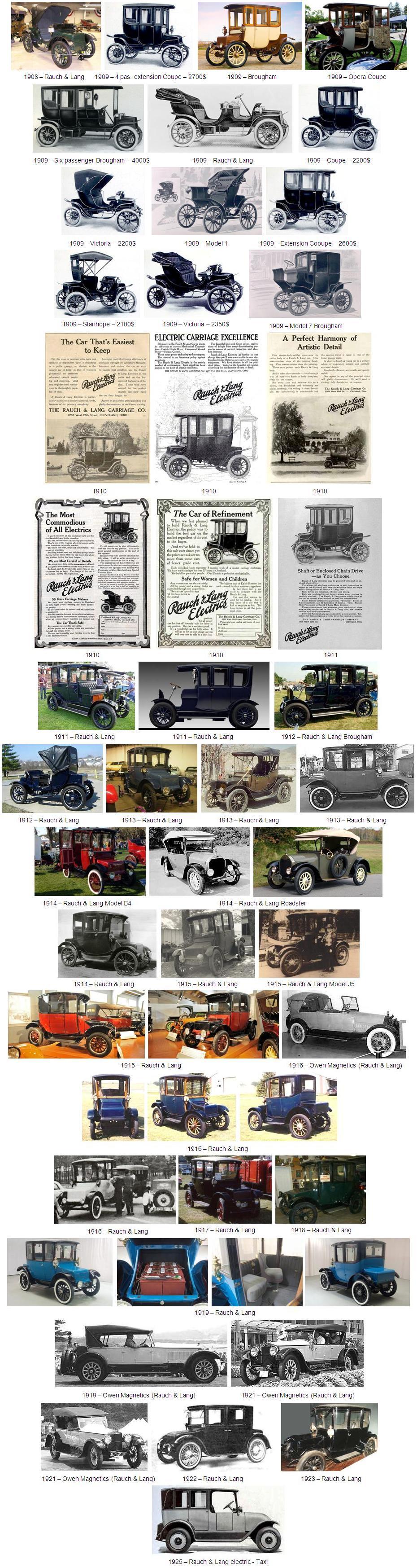 Jacob Rauch y Charles E. J. Lang eran fabricantes de vagones, pero a partir de 1905 empezaron a producir automóviles eléctricos en una fábrica ubicada en Cleveland (Ohio). Su primer modelo fue un vehículo tipo Stanhope, y en 1908 esta firma ya producía 500 automóviles al año.