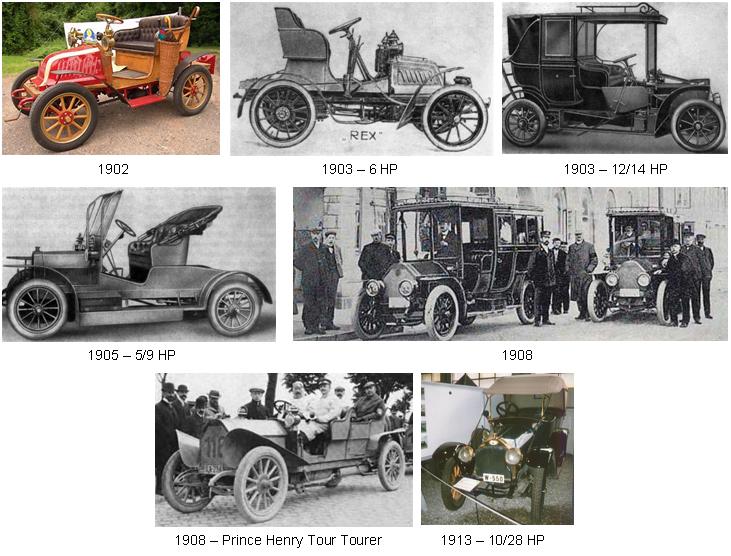 En 1903, los coches "Rex Simplex", estaban disponibles opcionalmente con motores De Dion-Bouton o Fafnir y hasta 1907 solo se suministraron 2 modelos distintos con motores de 4 cilindros.