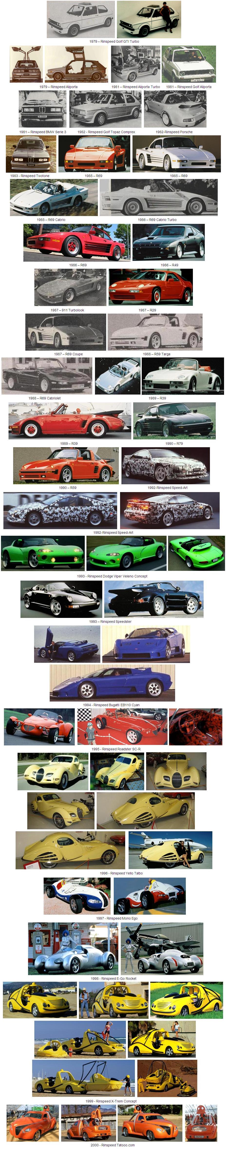En 1995 son presentados el “R” y el “SC-R”, unos prototipos que emulan a los Lotus Seven por concepción. En 1996 presenta un rediseño de los Talbot Lago al que denomina Rinspeed Yello Talbo. En 1997 es presentado el Mono-ego. En 1998 se presenta el E-Go rocket. Todos estos vehículos son de diseño propio y se sirven de mecánicas existentes pero retocadas.
