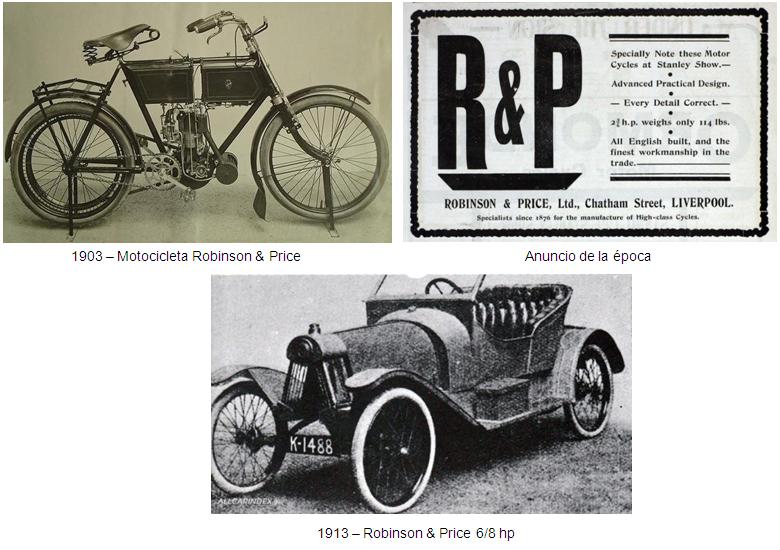 La “Robinson & Price Limited” fue un fabricante británico, ubicado en Chatham Street, Liverpool (Lancashire). Inicialmente fabricaba motocicletas, pero entre 1905 y 1906 produjo dos modelos de automóvil; uno equipado con un motor monocilíndrico de 6,5 hp, y otro equipado con un motor de 2 cilindros de 10/12 hp. Los coches “Robinson & Price” (R&P), no tuvieron demasiado éxito y se produjeron pocas unidades.
