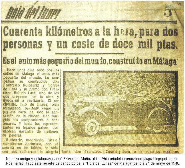 En Málaga se ha construido el coche más pequeño del mundo. (Transcripción literal del artículo aparecido en 1948 en el Diario SUR de Málaga)