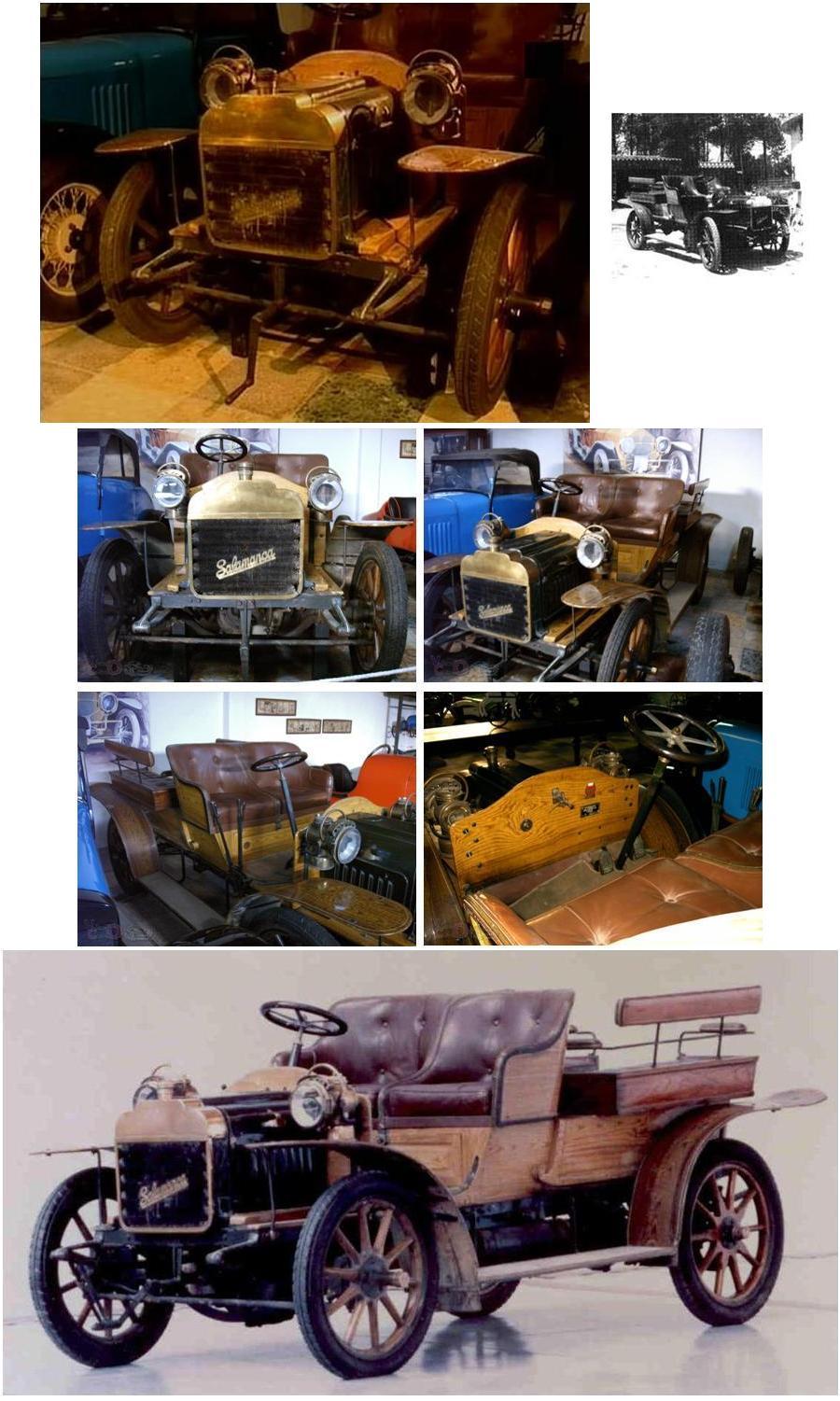Fabricado en Madrid, probablemente entre los años 1902 y 1905 (como máximo 1907), aparece este automóvil marca Salamanca. Los componentes mecánicos (motor, caja de cambios, diferencial) son de la marca francesa, montados sobre un chasis y carrocería artesanal fabricada en madera. Como detalle curioso el radiador es del tipo serpentín, aunque colocado en posición vertical en el frontal del coche.
