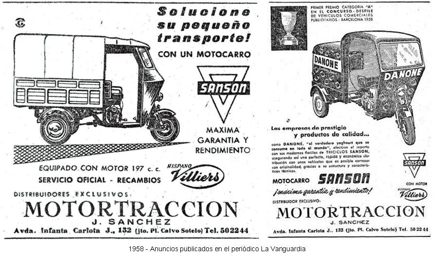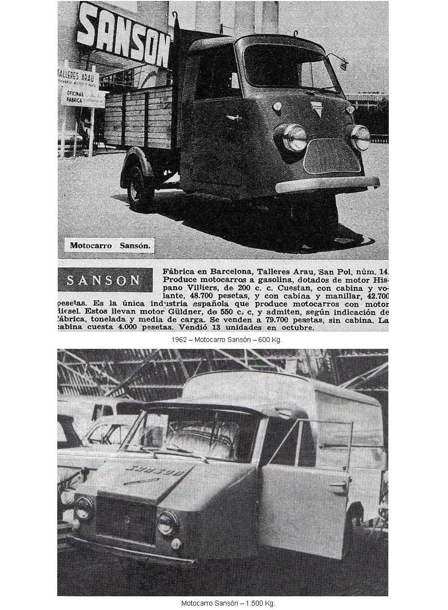 Con la marca "Sansón" realmente llegaron a comercializarse diversos motocarros. Nuestro amigo y colaborador Lluís Pallás nos recuerda que en el libro "Microcoches Españoles" de Miguel Pascual, aparecen fotografiados los dos modelos diesel que construyeron, uno para 600 Kg. de carga y otro para 1.500 Kg. de carga, que llevaba un motor bicilíndrico Matacás. (Fotografías que reproducimos más abajo).