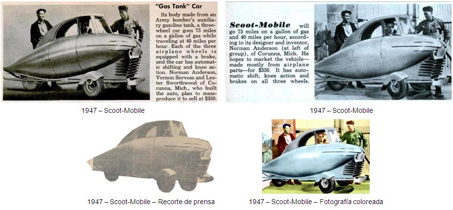 Norman Anderson, de Corunna, Michigan, presentó en 1947 en la prestigiosa revista Modern Mechanix, un prototipo de microcoche de 3 ruedas (dos delanteras y una trasera) denominado Scoot-Mobile.