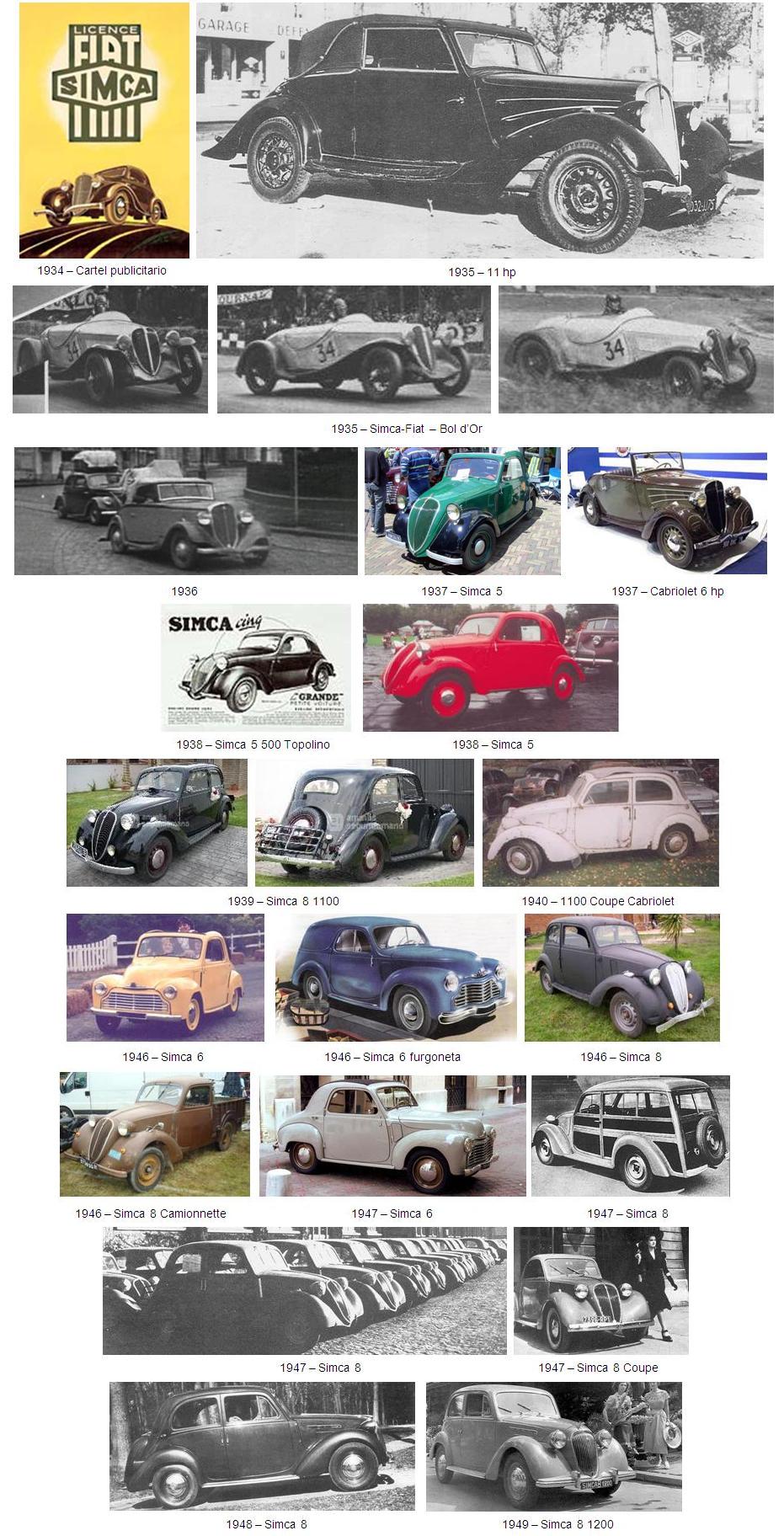 El primer modelo comercializado en Francia a partir de 1934 fue el FIAT Balilla de 11 hp, vendido como SIMCA-FIAT.