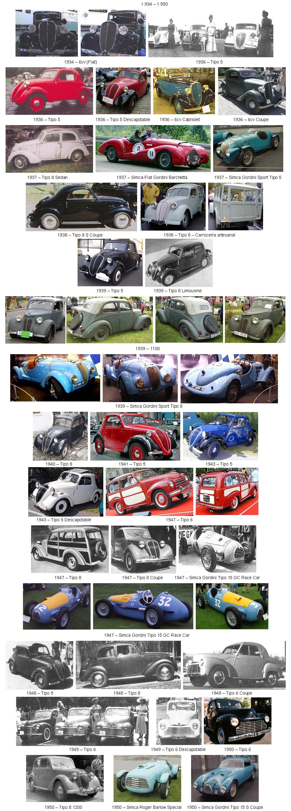 1936 se presentó el Simca 5, en 1937 el Simca 8 y en 1947 el Simca 6.