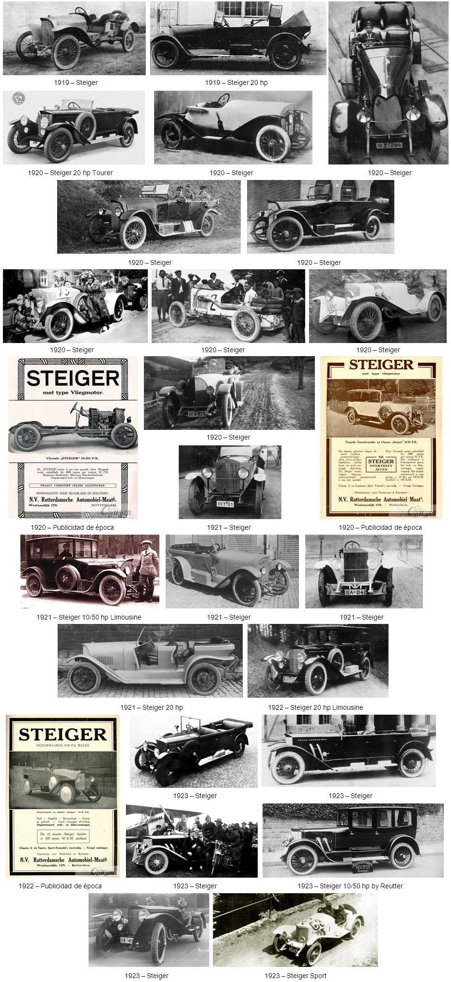 | Steiger 10/50 hp | 1920-1926 | 4 cilindros | 2604 cc | 50 hp | 95 Km/h (60 mph) |