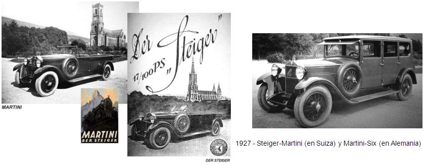 Tras la liquidación de su firma, Walther Steiger se unió al fabricante de automóviles suizo Martini (ver historia), firma en la que él y su hermano Robert eran los principales accionistas desde 1924.