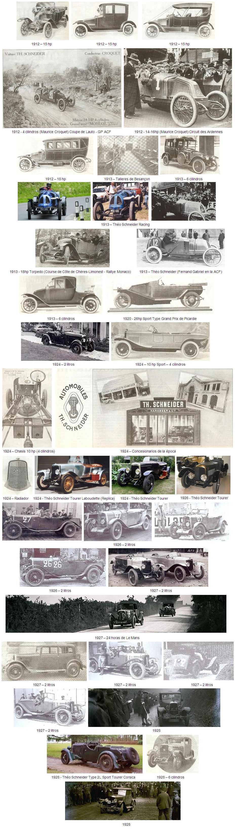 En 1912, las participaciones en carreras se multiplicaron y los premios empezaron a llegar, como la “Coupe de la régularité” obtenida en el “Grand Prix de France”, disputado en el circuito de La Sarthe. Los pilotos Champoiseau, Croquet y Nicodémi acabaron en segundo, cuarto y sexto lugares respectivamente conduciendo un 14/16 hp de serie. En el “Grand Prix de l’ACF” en Dieppe, Croquet ganó la “Coupe de l’Auto”, que se otorgaba al primer coche francés que terminaba la carrera, al completar 1.540 kilómetros en 17 horas y 30 minutos a 90 km/h de promedio, sin habituallamientos. Maurice Croquet se impuso un 21 de julio en el circuito de “les Ardennes”, terminando la carrera de 1.200 km a más de 80 km/h de promedio. Los Théo Schneider se imponían igualmente en las subidas en cuesta y Juvanon obtuvo la victoria en su categoría en “Mont-Ventoux” al subir los 22 kilómetros en poco más de 28 minutos.
