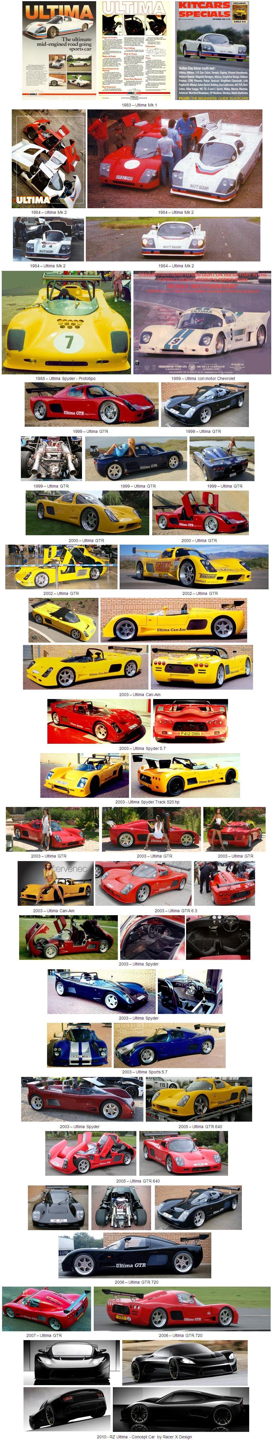 Todos los modelos de la gama Ultima son casi siempre suministrados en forma de componentes. Es decir, que Ultima produce las piezas necesarias para un propietario/constructor para que éste construya el coche en sus talleres. Esta es la única forma de conseguir un vehículo en los Estados Unidos, incluida la carrocería totalmente construida pero sin motor y sin transmisión, no obstante, y para el mercado europeo, se fabrican coches completos “llave en mano”.