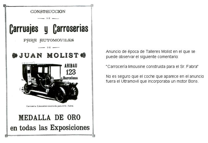 talleres de los hermanos Molist ubicados en la calle Aribau, 123 de Barcelona. Si bien es cierto que estos vehículos