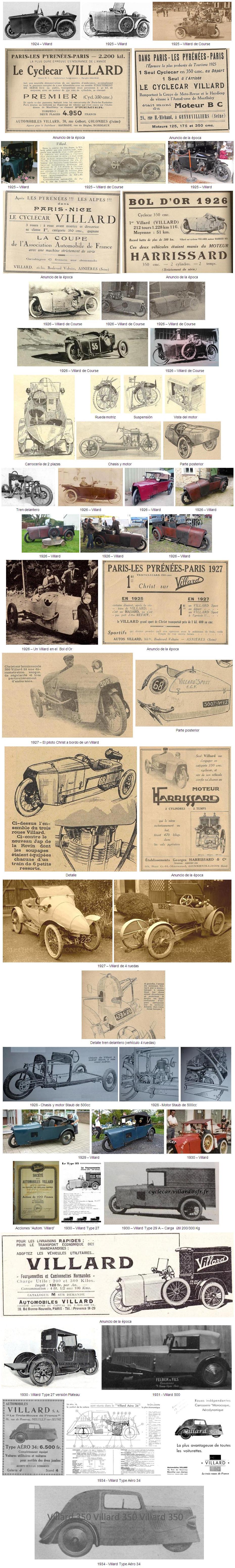 El primer prototipo del cyclecar “Villard” fue construido en 1923. Era un vehículo de tres ruedas (una delantera y dos traseras), con la peculiaridad de que tanto la dirección como la tracción corrían a cargo de la única rueda delantera. Aunque también se utilizaron otros motores, principalmente estaba equipado con un motor monocilíndrico Harrissard de 2 tiempos y 347cc, que desarrollaba 4hp (72mm x 85mm). El motor estaba ubicado en la parte delantera y tenía un sistema especial de ventilación. La tracción se ejercía mediante cadena sobre un piñón fijo de la rueda delantera y la transmisión tenía seis marchas de avance y marcha atrás. La rueda delantera y las traseras tenían el mismo diámetro y los frenos estaban situados en las ruedas posteriores. Tenía una distancia entre ejes de 1.850mm (72,8 pulgadas).