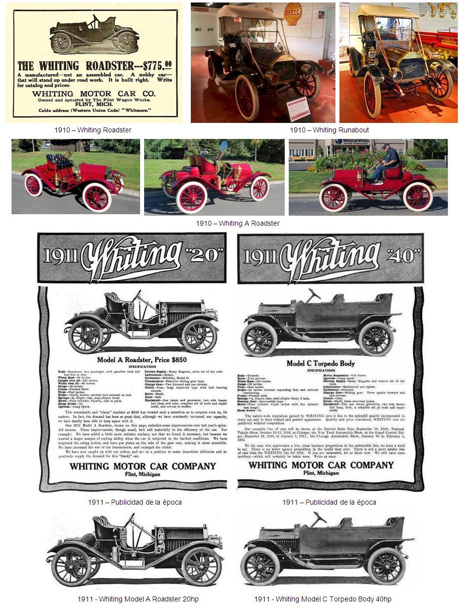 En 1910 la “Flint Wagon Works” empezó a fabricar automóviles con el nombre de Whiting. En 1911 Whiting fundó la “Whiting Motor Car Company” y siguió fabricando coches con su propio nombre, en su fábrica original. La producción de los coches Whiting cesó en 1912.