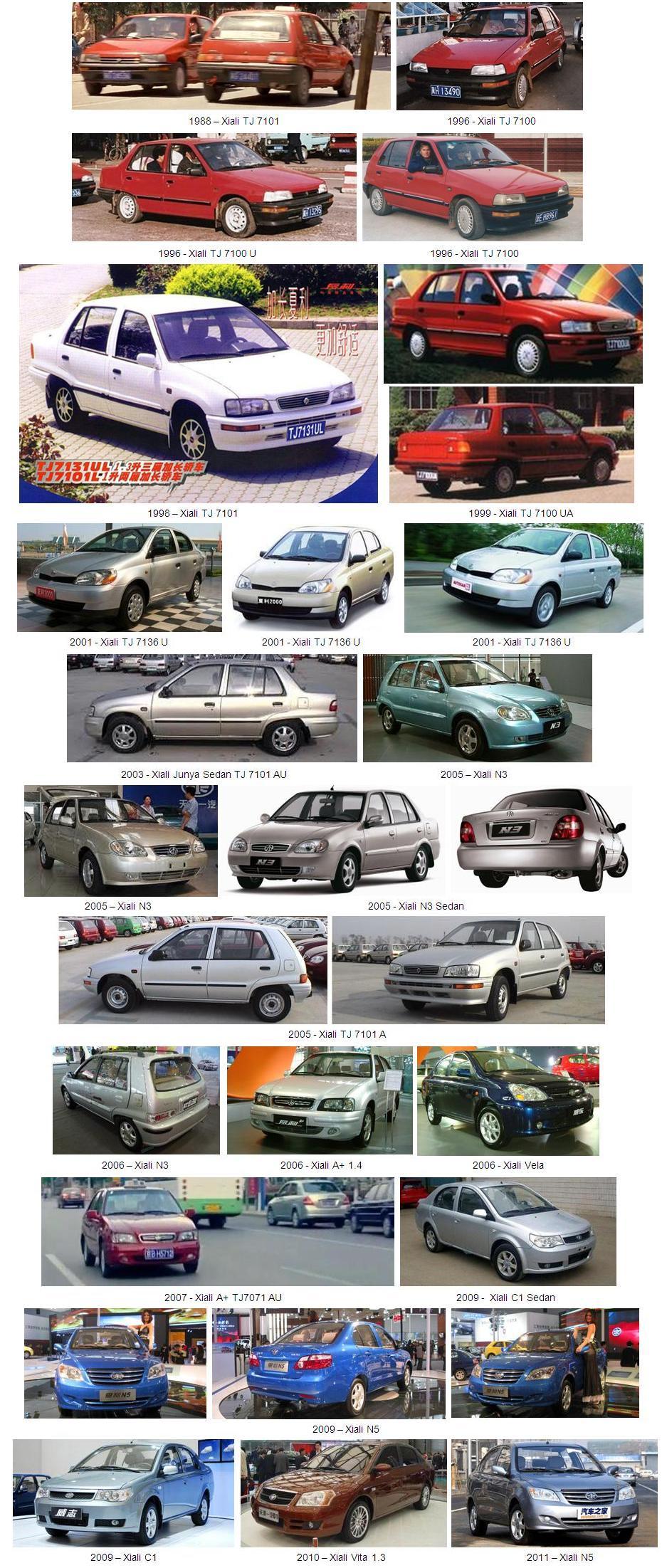 En la actualidad Xiali también fabrica vehículos basados en modelos de Toyota, como el Xiali 2000, basado en el Toyota Plats/Vitz. (Toyota también construye y vende vehículos en China con su propia marca).
