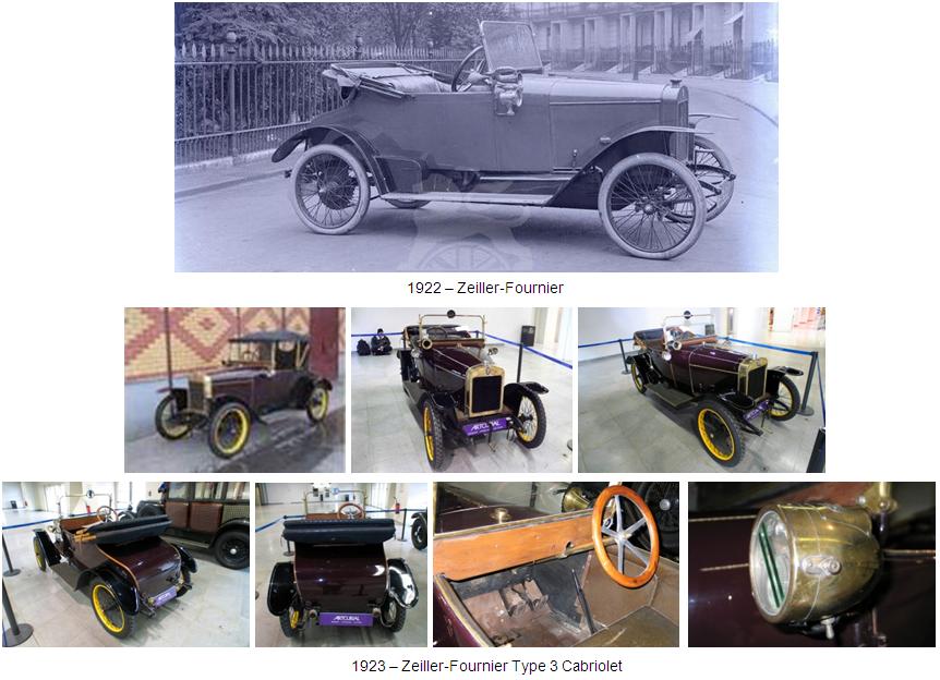 Los coches “Zeiller-Fournier” fueron presentados en un stand de la 15ª edición del Salón de París. La firma exhibió un coche con una distancia entre ejes de 2330mm, equipado con un motor delantero Ballot (Tipo 4M) de 4 cilindros en línea (60mm x 100mm) de 1131cc y 6/8hp. El coche ofrecía una singular transmisión por fricción de 5 velocidades y transmisión final por cadena. También fue presentado un coche más pequeño equipado con un motor Ruby de 4 cilindros y 904cc.